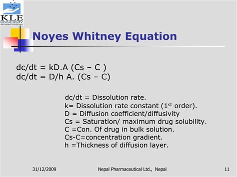 Noyes Whitney. Le particelle dissolte nello strato diffusionale diffondono nella massa liquida che. (2) 固体の溶解度式 (nernst‐noyes‐whitney’s equaon) 固体の液体への溶解現象は薬学で非常. Factors influencing dissolution rate. The main biopharmaceutical and physiological factors that. 第6 回製剤技師認定試験【基礎編】 1 物理薬剤学 第1問 固体薬物a は液体中で拡. 問4 noyes-whitney式に関する記述の正誤について、正しい組合せはどれか。 t:時間, c:. Biomedical and life sciences reference. Modified noyes and whitney equation is used to describe the dissolution pathway, where dc/dl. Josiah noyes whitney, junior is the son of josiah noyes whitney and eliza ann kilton. Noyes and whitney published the first quantitative study of the dissolution process in 1897 [7].